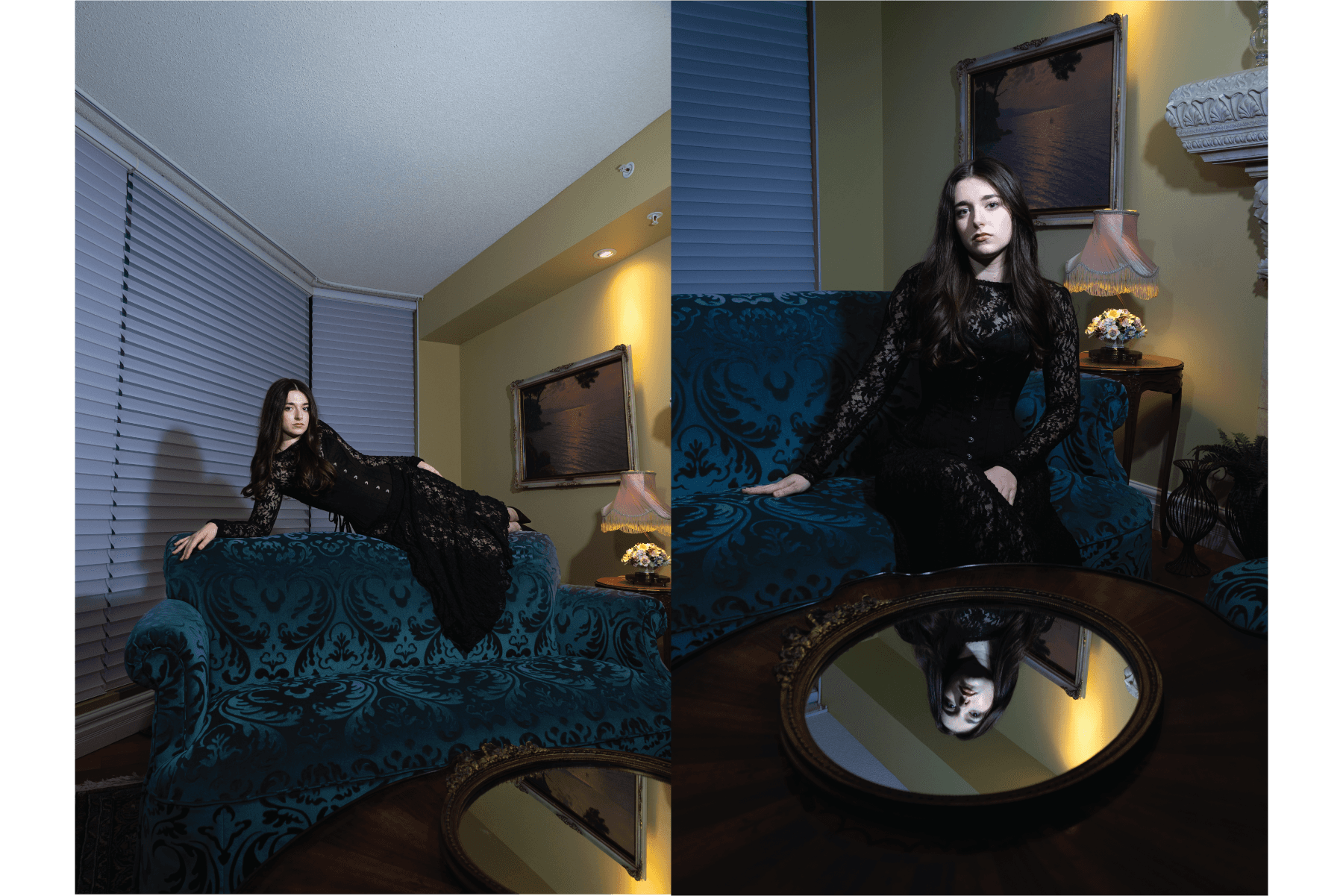 Using strobe lighting, this photoshoot was an editorial styled shoot incorporating vintage and luxury fashion and furniture. Shooting outside a studio allowed for deeper meaning in this shoot, as I was able to use the environment to my fullest potential.