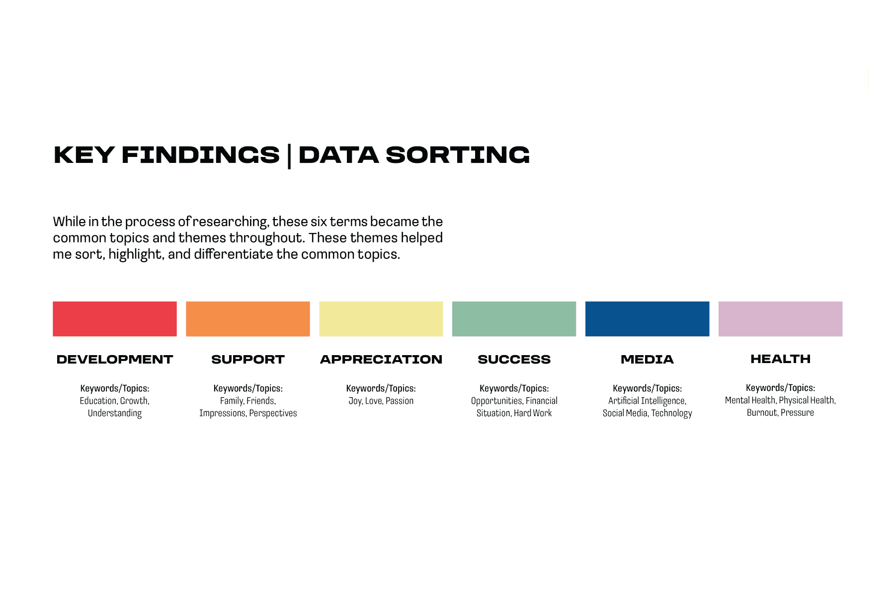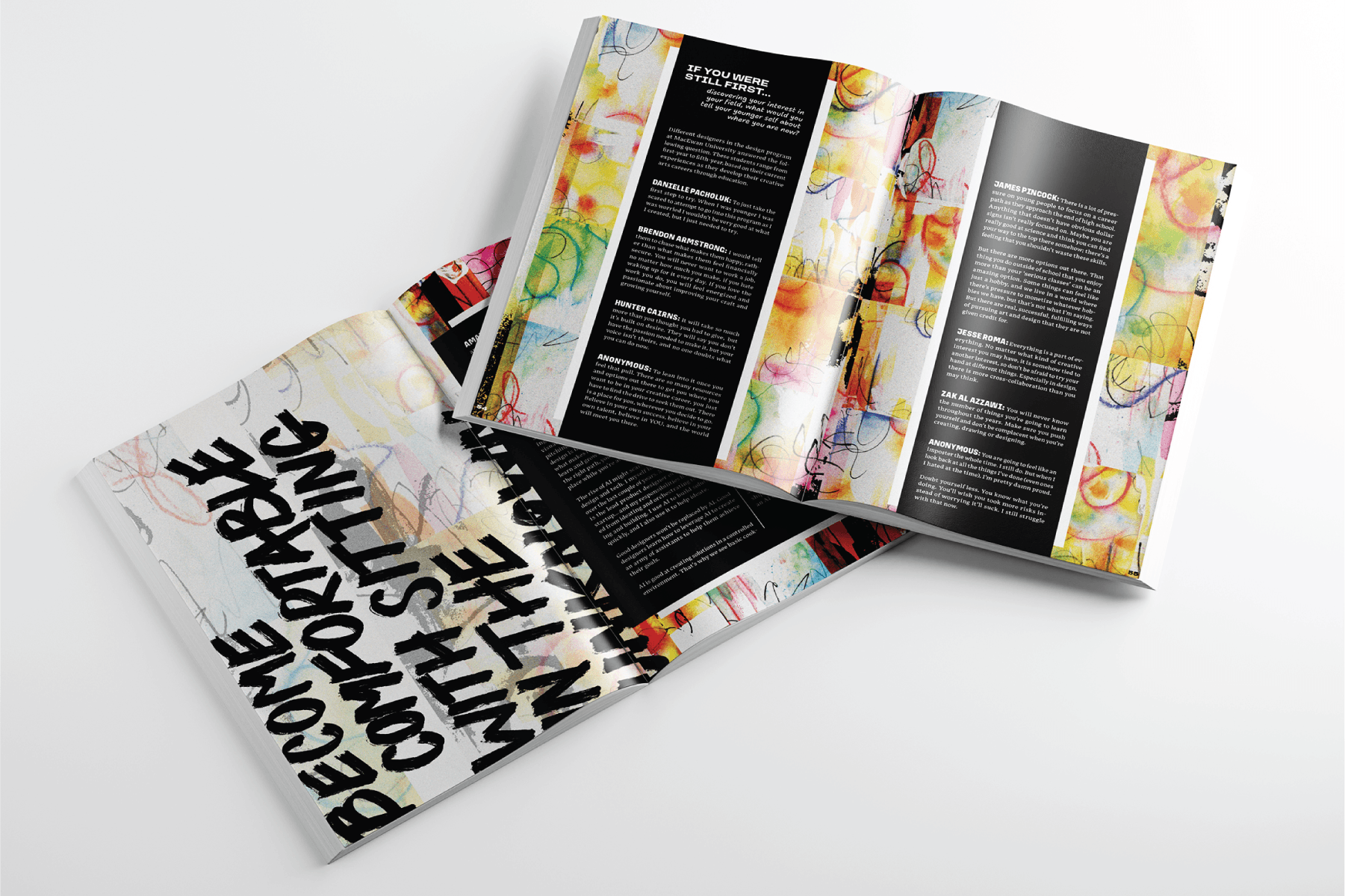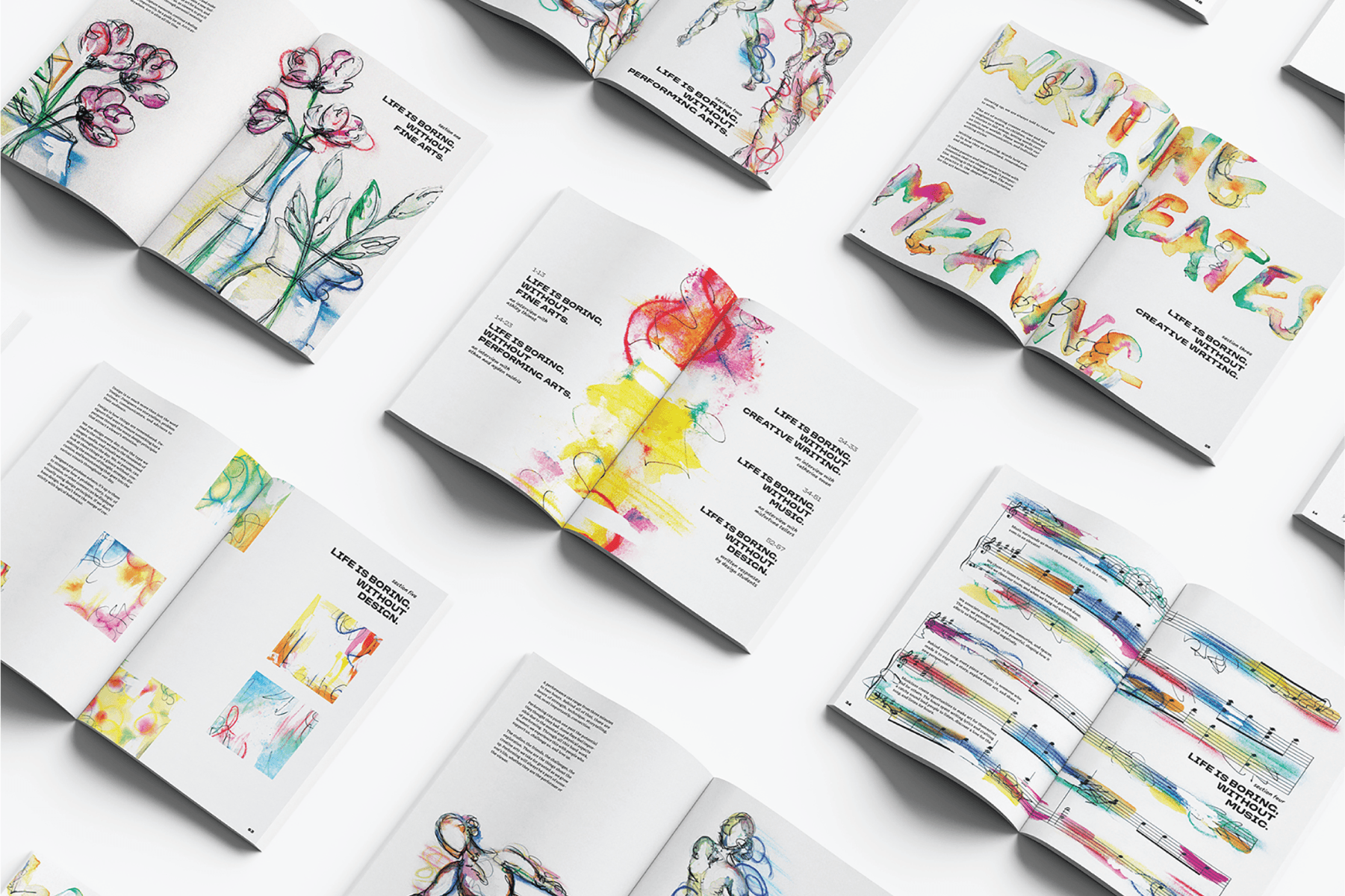 The outcome of "Life is Boring, Without the Arts" is a publication that highlights the various fields within the creative arts and different experiences of individuals and groups working in the industry. This publication was designed to showcase what a high school student’s future could look like if they continue their passion in the arts, highlighting the professional and exciting values of the arts.